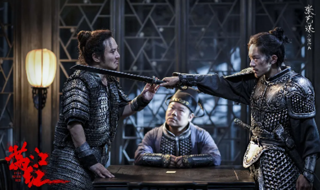 千百年来,岳飞《满江红·怒发冲冠》因为其浩然正气和家国情怀,成为家喻户晓的名篇。电影片名《满江红》,但电影中并没有岳飞,也没有岳飞的故事,看似与岳飞的《满江红·怒发冲冠》也无直接关联。然而影片紧张悬疑,环环紧扣,核心都是围绕着《满江红》。《满江红·怒发冲冠》这首词宋代才被发现,是不是岳飞原创,上世纪三十年以来,学界多有争议。影片给了一个虽然虚构,但不无逻辑的解读版本。影片最后,大奸臣秦桧站在城楼上,在孙均胁迫下,带着全军复诵岳飞遗作《满江红》,将剧情推向了高潮。